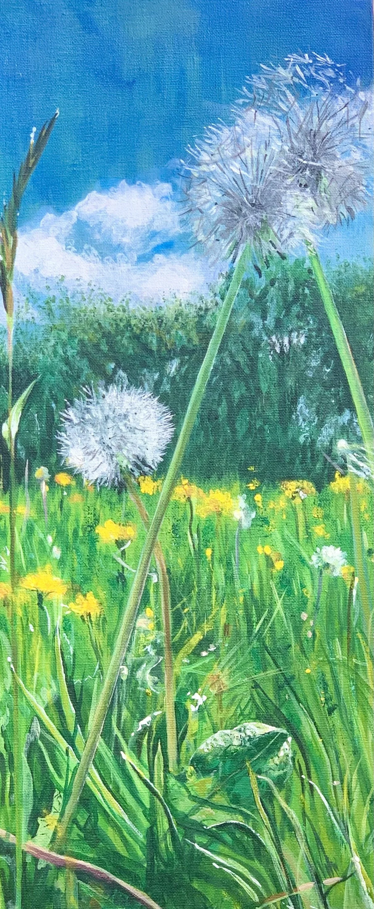 "Dandelion Delight" 60cm x 25cm Acrylic on Canvas 3.5cm deep frame